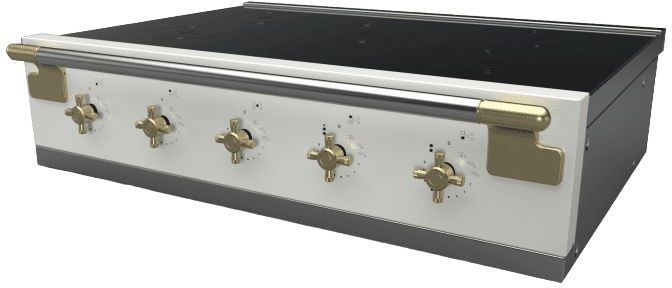 The AGA Elise Induction Rangetop can now be further customized with stately Antique Brass Handle Stanchions and Antique Brass Knobs that highlight the refined elegance of the rangetop. This option MUST be specified at time of ordering.